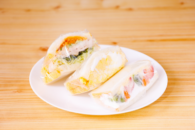 野菜たっぷりのお惣菜系サンドイッチは、食べ応えがあり見た目も華やか。主婦ならではのアイデアとパン屋で培った技術で、一つひとつ丁寧に作り上げています。自動販売機でもご購入いただける手軽さも人気の理由のひとつです。また、旬の果物を使ったフルーツサンドは、季節の移り変わりを感じられる当店の人気商品。フレッシュな味わいをお楽しみください。